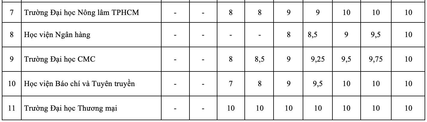 Nhiều trường đại học top đầu như Đại học Bách khoa Hà Nội, Đại học Kinh tế quốc dân... cũng cho phép thí sinh quy đổi điểm IELTS để xét tuyển. Chi tiết xem tại bảng sau: