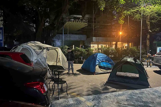 Đáng nói, do chủ đầu tư đóng barie không cho cư dân đưa xe vào trong bãi đỗ, trong đêm 1.4, nhiều người dân phải dựng lều bạt để trông giữ phương tiện đang đỗ bên ngoài cổng KTX. Theo cư dân, việc này gây ảnh hưởng nghiêm trọng đến cuộc sống và an ninh trật tự trong khu vực.