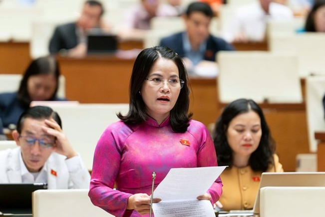 Đại biểu Quốc hội Nguyễn Hoàng Bảo Trân đề nghị bổ sung quy định viên chức thôi việc do sắp xếp tổ chức, sáp nhập đơn vị hành chính được trợ cấp một lần tối thiểu 12 tháng lương. Ảnh: Quochoi.vn