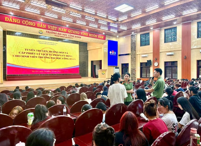 Từ thực tiễn yêu cầu cấp lý lịch tư pháp tại trường Đại học, Phòng Hồ sơ nghiệp vụ Công an thành phố Hà Nội đã tổ chức tuyên truyền, cấp lý lịch tư pháp lưu động tại trường Đại học Công đoàn Hà Nội.