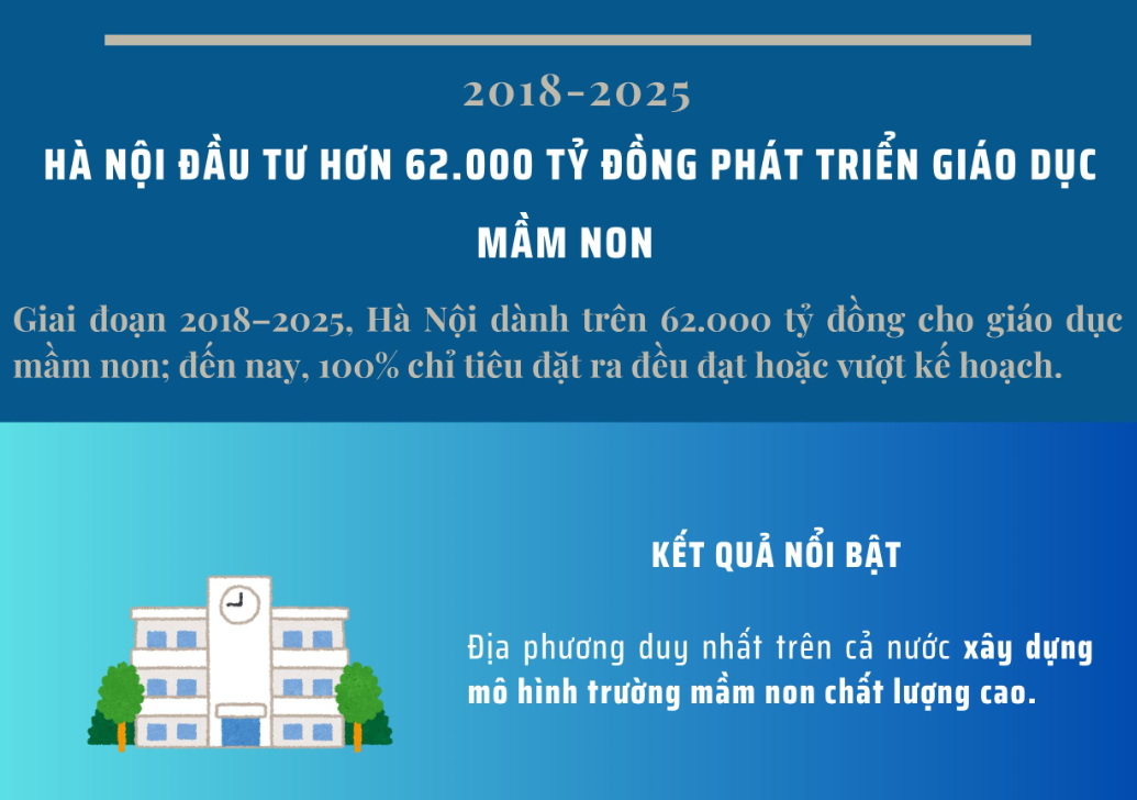 Trong giai đoạn 2018-2025, Hà Nội chi hơn 62.000 tỷ đồng cho giáo dục mầm non, tất cả chỉ tiêu đều đạt hoặc vượt kế hoạch.