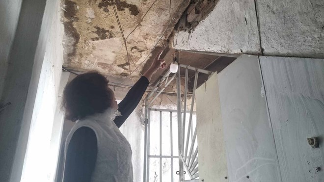 Theo bà Bình, tình trạng chung cư xuống cấp nghiêm trọng nên ai cũng nơm nớp lo sợ đặc biệt là trong những ngày mưa gió, lũ bão. Thực tế, từng có trường hợp phải đi cấp cứu vì mảng trần nhà đổ sập đè vào người.