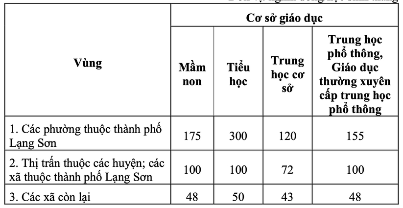 Theo đó, Nghị quyết số 10/2024/NQ-HĐND của HĐND tỉnh Lạng Sơn quy định mức thu học phí đối với cơ sở giáo dục mầm non, giáo dục phổ thông công lập năm học 2024 - 2025 trên địa bàn tỉnh Lạng Sơn.
