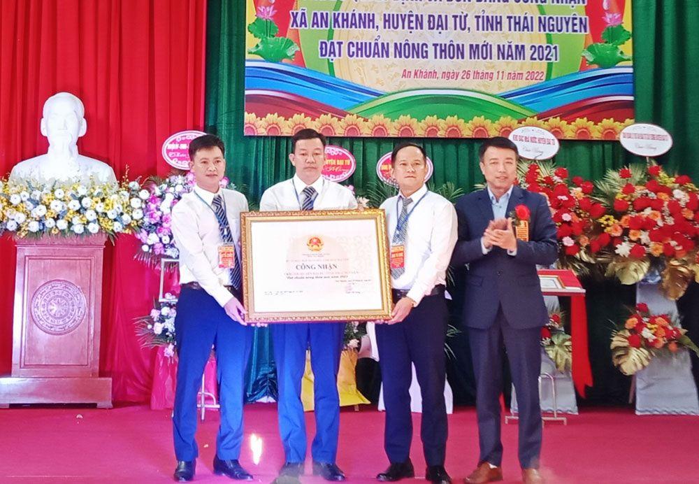 Lãnh đạo xã An Khánh, huyện Đại Từ đón nhận Bằng công nhận đạt chuẩn nông thôn mới