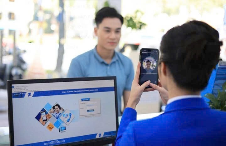 Nhân viên VinaPhone chụp ảnh cho khách hàng đăng ký thuê bao. Ảnh: VNPT