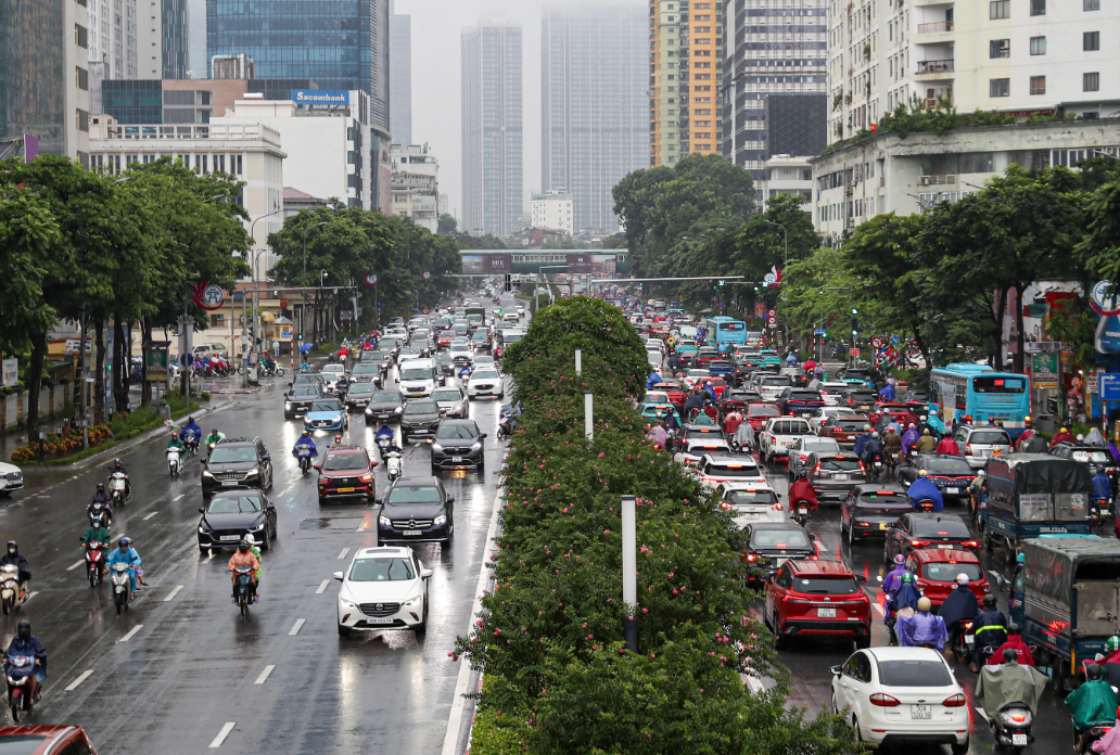 Mưa dông từ sáng sớm, nhiều tuyến đường ở Hà Nội tắc nghẽn nghiêm trọng