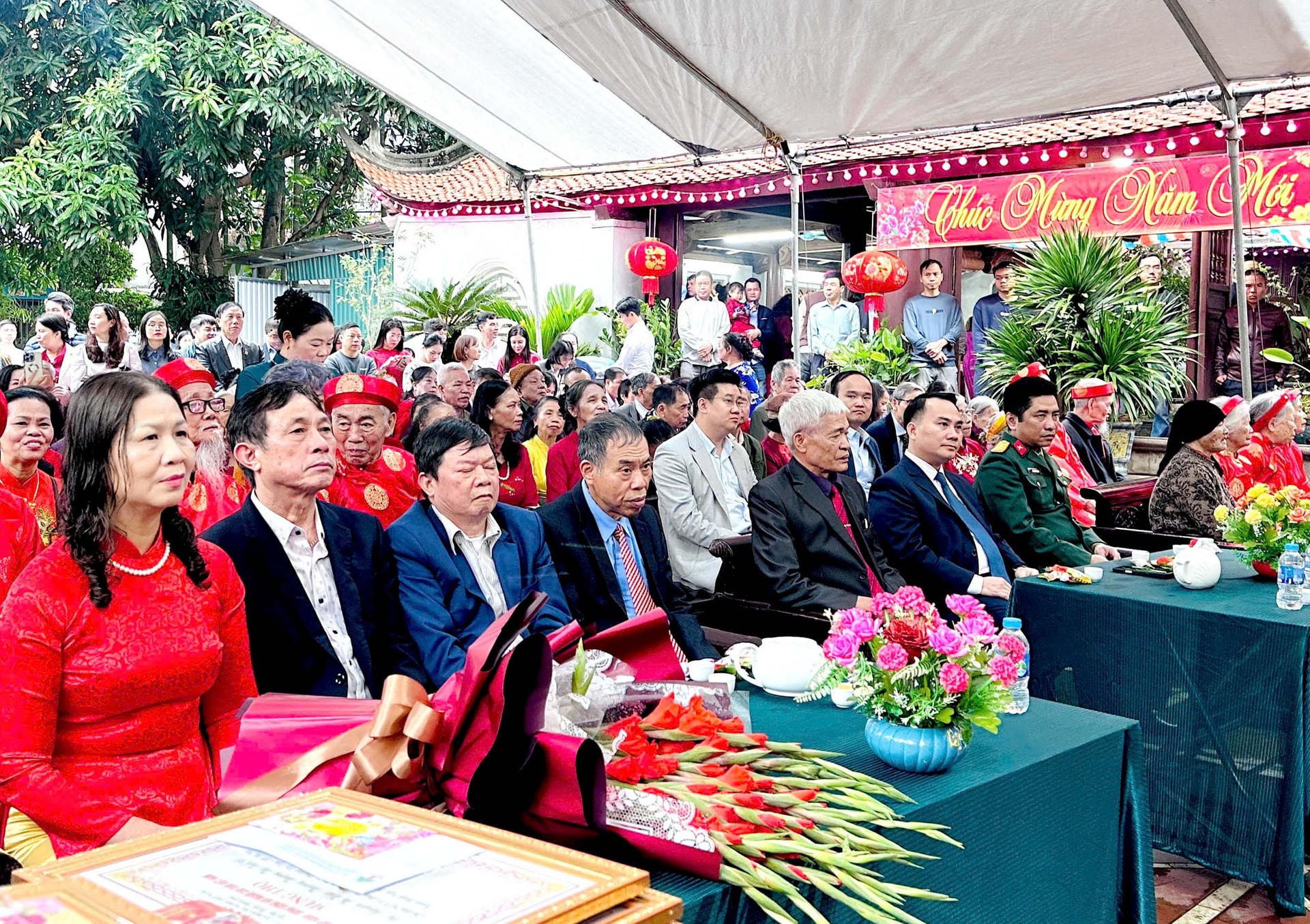 Chủ tịch UBND phường Tây Tựu Vũ Duy Hùng dự lễ chúc thọ, mừng thọ đầu xuân tại Chi hội Người cao tuổi Nguyên Xá 1, 2, 3. Ảnh: TT