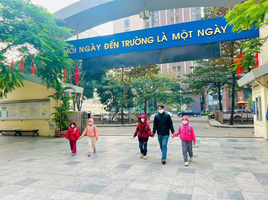 Theo cô Hiền, để tránh việc các con phải ra đường vào thời điểm nhiệt độ xuống thấp nhất trong ngày, nhà trường điều chỉnh khung giờ đón - trả trẻ linh hoạt. Cụ thể, kéo dài thời gian đón trẻ thêm 30 phút: Thay vì giờ đón thông thường, ba mẹ có thể đưa con đến trường muộn hơn 30 phút để bé có thêm thời gian nghỉ và ăn sáng ấm bụng tại nhà. Mở cổng đón sớm 15 phút vào buổi chiều, nhà trường sẽ mở cổng sớm hơn 15 phút để phụ huynh có thể đón con về sớm, tránh gió lùa lúc chiều muộn.