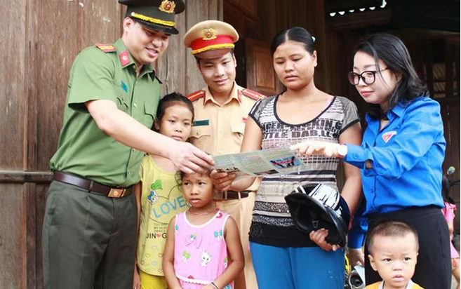 Lực lượng công an tuyên truyền tới người dân về việc nhận diện và phòng, chống tội phạm mua bán người |