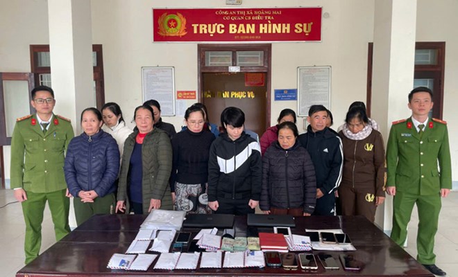 Ngày 17.12.2024, Công an thị xã Hoàng Mai triển khai 17 tổ công tác, sử dụng đồng bộ các biện pháp nghiệp vụ phá thành công chuyên án, đồng loạt bắt 23 đối tượng liên quan; thu giữ 32 điện thoại di động, nhiều sổ sách ghi số lô, đề và 200 triệu đồng tiền mặt.