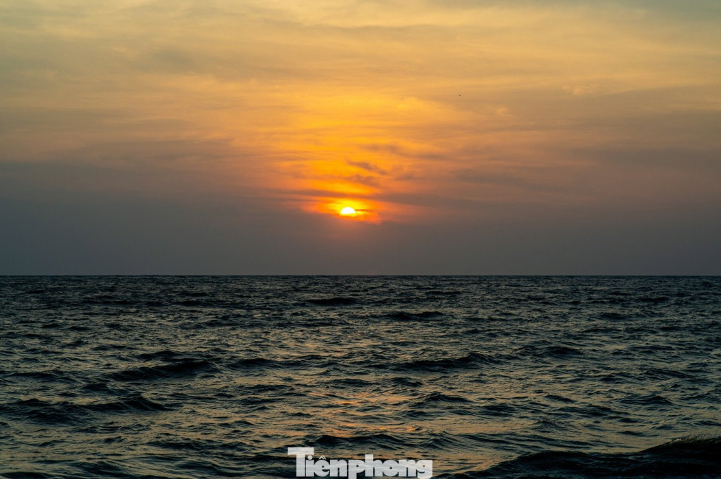 Khoảnh khắc hoàng hôn buông xuống trên mặt biển đảo Thanh Lân.
