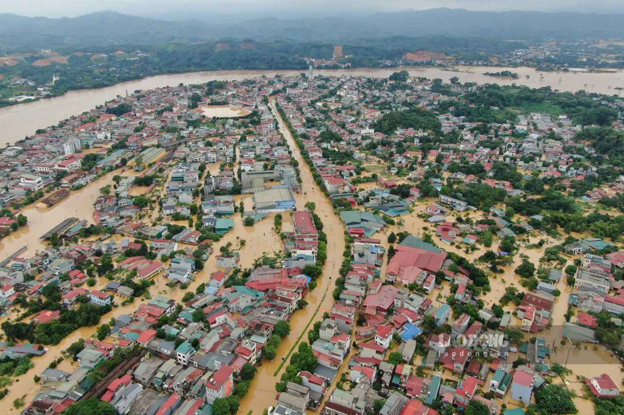 Nhiều tuyến đường bị ngập sâu, nhiều tài sản bị nhấn chìm dưới dòng nước lũ ở phường Yên Bái, Lào Cai. Hoạt động du lịch ở Tây Bắc tê liệt. Ảnh: Văn Đức