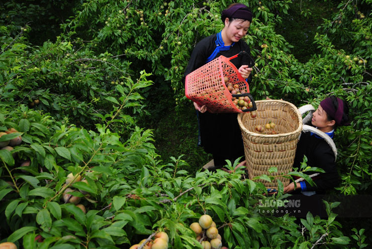 Trải nghiệm hái mận chín tại vườn ở bản Tả Van. Ảnh: Duy Dũng