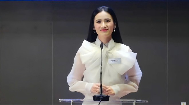 Người đẹp nói về ước mơ thời thơ ấu và khát vọng ở thời điểm hiện tại: “Nếu bạn từng mơ ước trở thành bác sĩ, giáo viên hay nhà lãnh đạo, hãy giơ tay lên. Tôi từng chia sẻ những giấc mơ đẹp đẽ, trong sáng ấy từ khi còn bé. Nhưng cuộc đời đưa tôi đến hành trình bất ngờ hơn là trở thành Miss World Vietnam 2023. Tại Hoa hậu Thế giới, tôi mong muốn dùng tiếng nói, sức ảnh hưởng để tiếp thêm sức mạnh và nuôi dưỡng thật nhiều những giấc mơ khác”.