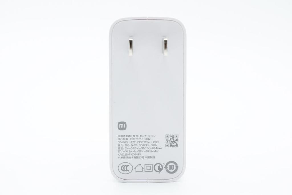 Cáp USB-C đi kèm có thể truyền tải cường độ dòng điện tối đa ở mức 10.5A. Dây cáp này đã được Xiaomi nâng cấp nhiều so với cáp 6A trước đó, nâng số lượng lõi bên trong trong khi đường kính tiết diện gần như không đổi