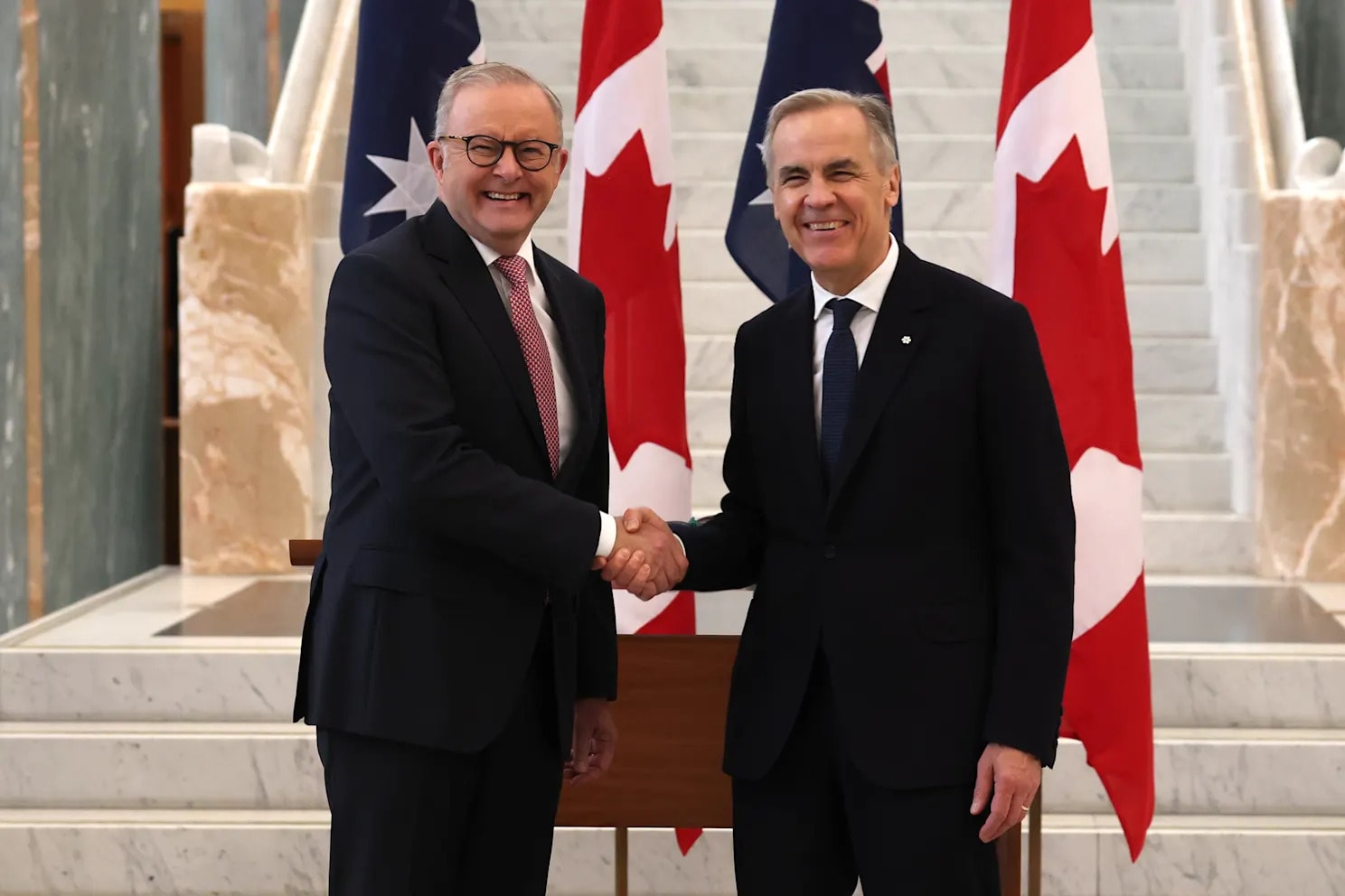 Thủ tướng Canada Mark Carney (phải) và người đồng cấp Australia Anthony Albanese. Ảnh: Sydney Morning Herald.