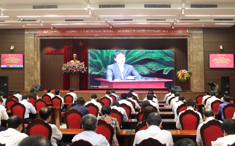 Quang cảnh hội nghị tại điểm cầu Thành ủy Hà Nội.