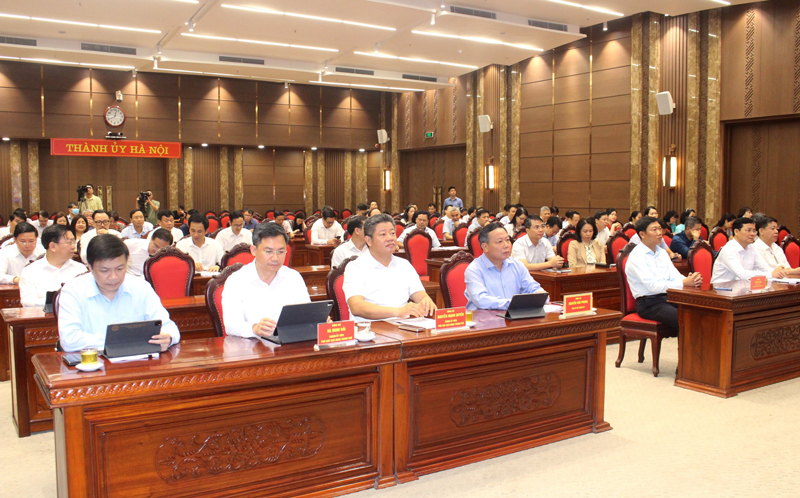 Đại biểu thành phố Hà Nội tham dự có các đồng chí: Ủy viên Bộ Chính trị, Bí thư Thành ủy, Trưởng đoàn đại biểu Quốc hội thành phố Đinh Tiến Dũng; Ủy viên Trung ương Đảng, Phó Bí thư Thành ủy, Chủ tịch UBND thành phố Trần Sỹ Thanh và một số Ủy viên Ban Thường vụ Thành ủy dự tại điểm cầu Trung ương. Dự tại điểm cầu Thành ủy Hà Nội có Phó Bí thư Thành ủy Nguyễn Văn Phong; lãnh đạo các ban Đảng Thành ủy, Thường trực HĐND, UBND thành phố...