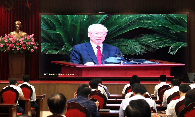 Tổng Bí thư Nguyễn Phú Trọng chủ trì hội nghị từ điểm cầu Trung ương tại Thủ đô Hà Nội. Đồng chủ trì hội nghị có các Ủy viên Bộ Chính trị: Chủ tịch nước Nguyễn Xuân Phúc, Thủ tướng Chính phủ Phạm Minh Chính, Thường trực Ban Bí thư Võ Văn Thưởng. Tham dự hội nghị có các Ủy viên Bộ Chính trị, Bí thư Trung ương Đảng, Trưởng các ban Đảng Trung ương, lãnh đạo Quốc hội, Chính phủ, các bộ, ban, ngành Trung ương và các tỉnh, thành phố trên cả nước...