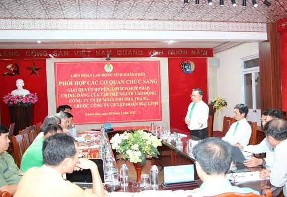 LĐLĐ tỉnh Khánh Hòa tham gia hỗ trợ bảo vệ quyền lợi cho người lao động làm việc tại Công ty TNHH Mai Linh Nha Trang bị nợ lương, BHXH kéo dài. Ảnh: Phương Linh
