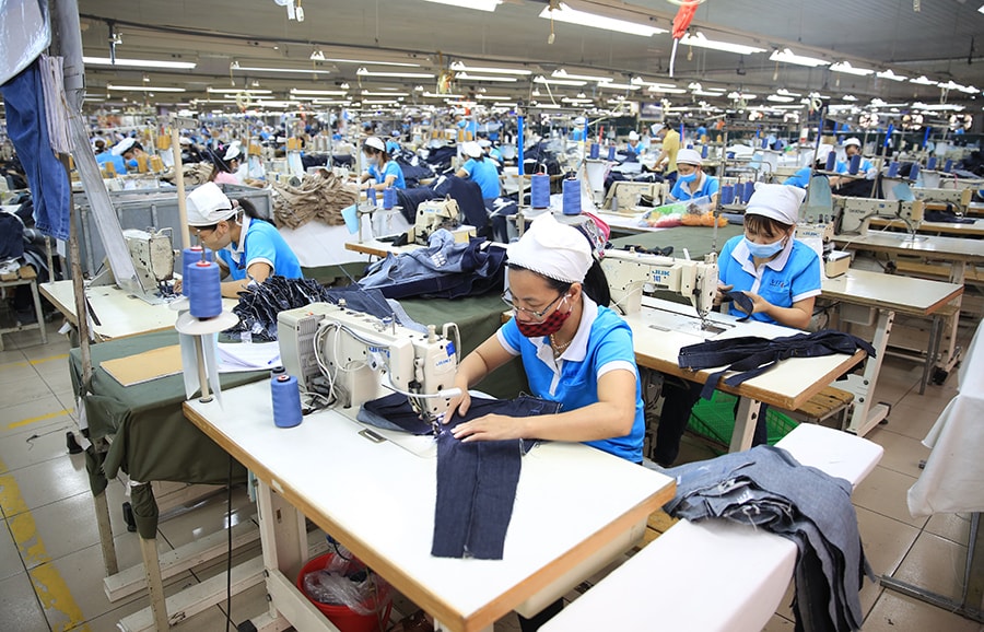 Sản xuất hàng xuất khẩu tại Công ty TNHH May mặc xuất khẩu Vit Garment (Khu công nghiệp Quang Minh). Ảnh: Đỗ Tâm