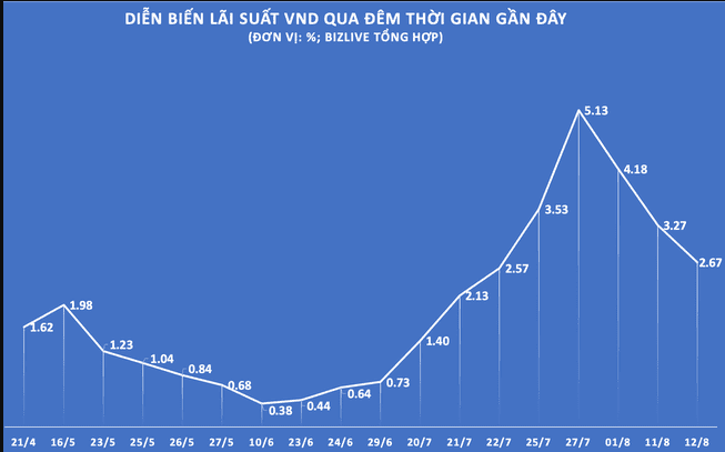 Đây là mức kỷ lục của lãi suất liên ngân hàng kỳ hạn qua đêm trong 10 năm qua, nhưng từ 9/9, lãi suất liên ngân hàng đã được điều chỉnh giảm mạnh.