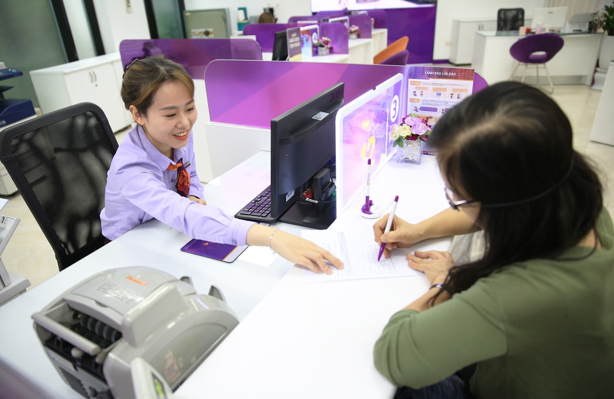 Tư vấn lãi suất cho khách hàng tại Ngân hàng thương mại cổ phần Tiên Phong. Ảnh: Quang Thái