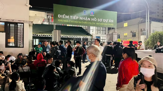 Cảnh người dân xếp hàng từ nửa đêm chờ đến sáng 17/11 để nộp hồ sơ mua nhà ở xã hội Kim Chung |