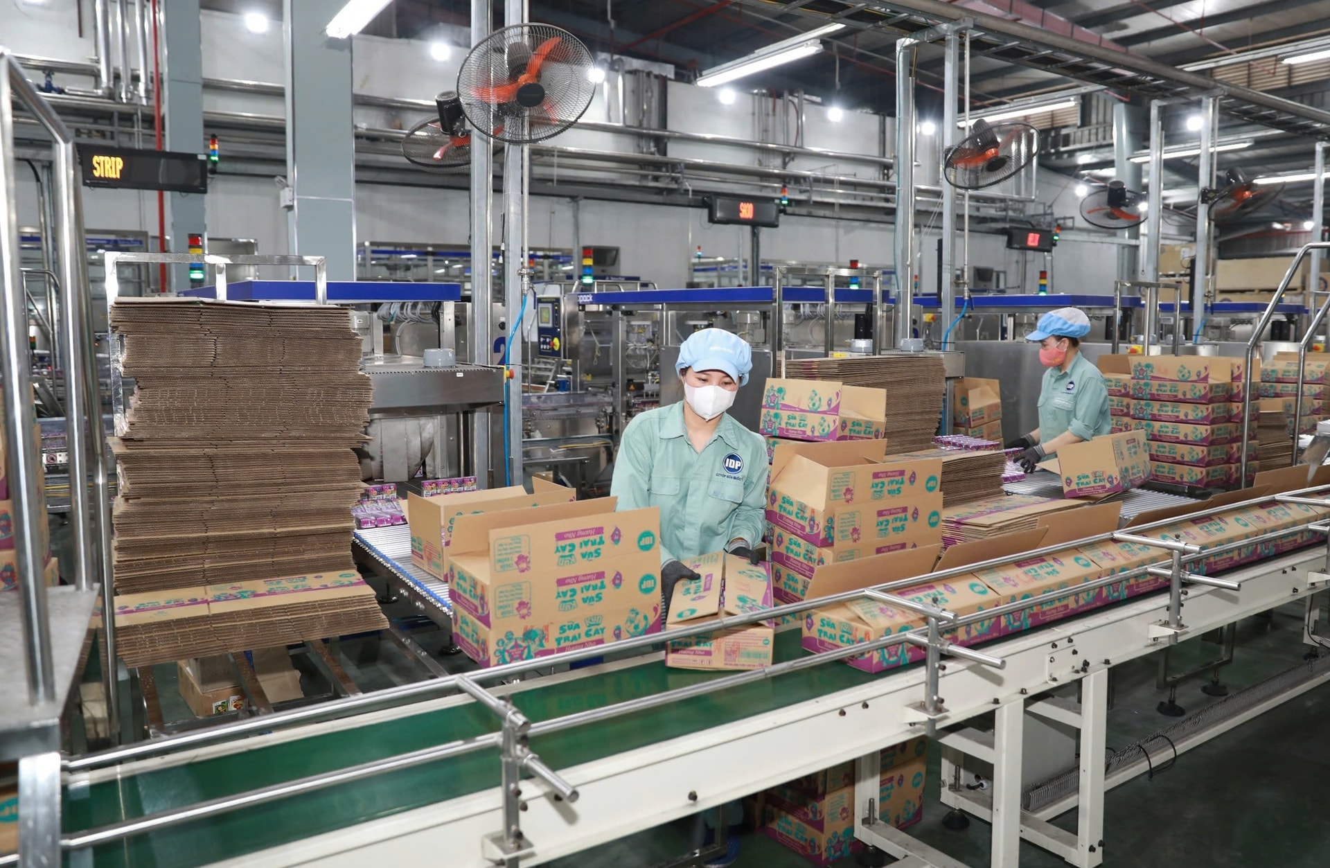 Dây chuyền đóng gói sản phẩm tại Công ty cổ phần Sữa quốc tế AIC (huyện Ba Vì). Ảnh: Đỗ Tâm