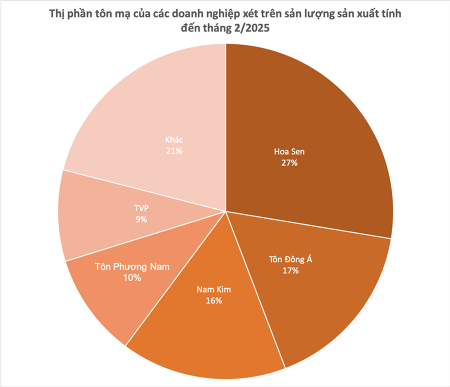 Tính đến tháng 2, Hoa Sen là doanh nghiệp sản xuất tôn mạ lớn nhất của Việt Nam với thị phần 27,6% xét trên sản lượng sản xuất. Đứng thứ hai là Tôn Đông Á với 16,6%. Tiếp đó là Thép Nam Kim, Tôn Phương Nam,...