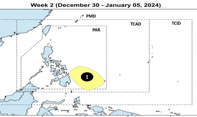 PAGASA dự báo, trong tuần từ ngày 30.12.2024 đến ngày 1.5.2025, áp thấp mới dự kiến hình thành ở phía nam khu vực dự báo của Philippines (PAR). Áp thấp gần Biển Đông này dự báo ít có khả năng mạnh lên thành bão nhiệt đới.