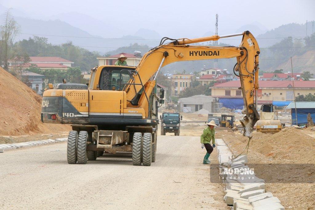 Trên công trường, các công nhân, máy móc được huy động san gạt, hoàn thiện các hạng mục bậc, rãnh nước, taluy và một số hạng mục phụ trợ khác.