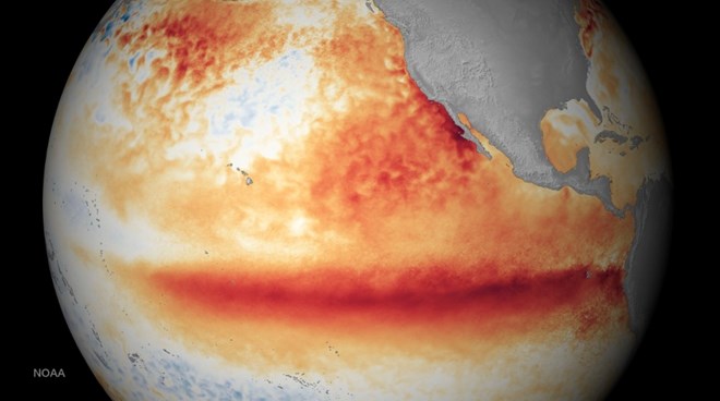 Nhiệt độ bề mặt Thái Bình Dương trong thời gian có El Nino - hiện tượng trái ngược với La Nina. Ảnh: NOAA