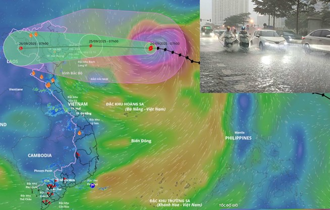 Đến 7 giờ ngày 25.9, vị trí tâm bão ở khoảng 21,5 độ vĩ bắc; 108,8 độ kinh đông, trên vùng biển tỉnh Quảng Ninh - Hải Phòng. Cường độ mạnh cấp 10-11, giật cấp 13.