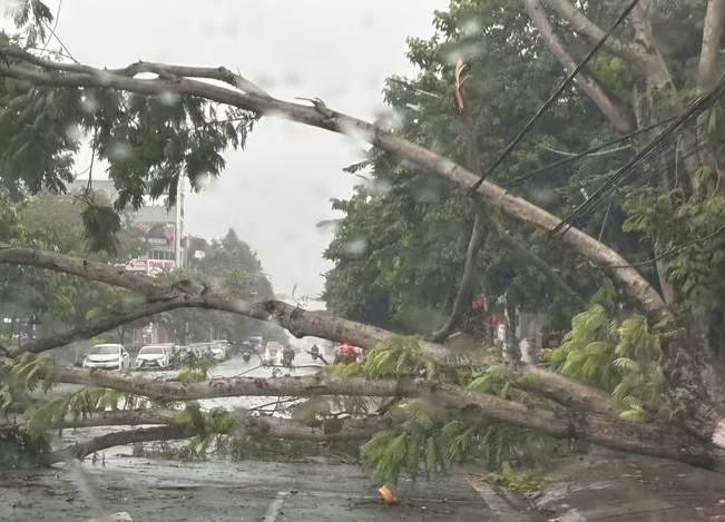 Mưa giông kèm gió giật mạnh làm nhiều cây lớn bị gãy, đổ tại một số tuyến đường xã Bát Xát, phường Lào Cai, phường Cam Đường, khiến giao thông đi lại khó khăn.