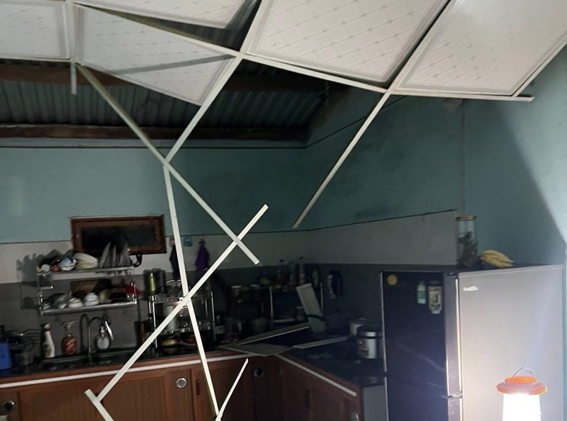 Theo ghi nhận ban đầu, ít nhất 5-7 nhà bị tốc mái một phần hoặc toàn bộ; cây xanh bị quật đổ nằm la liệt, nhiều đoạn đường liên thôn ngổn ngang mảnh tôn và vật liệu xây dựng; một số chuồng trại, công trình phụ bị hư hỏng.