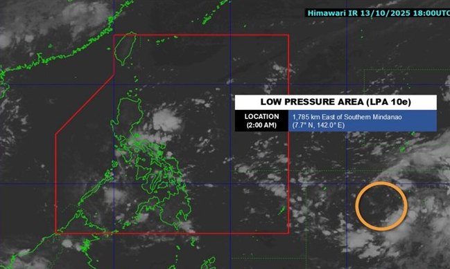 Thời điểm hình thành ngày 13.10, áp thấp 10e cách Nam Mindanao khoảng 2.540km về phía đông và được dự báo ít có khả năng trở thành áp thấp nhiệt đới.
