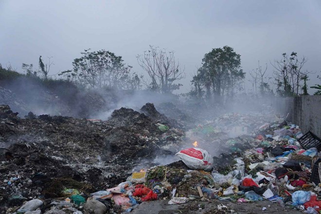Mù mịt khói tại bãi rác quá tải ở Hải Dương
