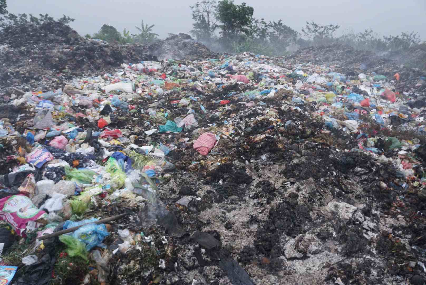 Rác chất đống ô nhiễm ở bãi rác thôn Cậy. Ảnh: Công Hòa