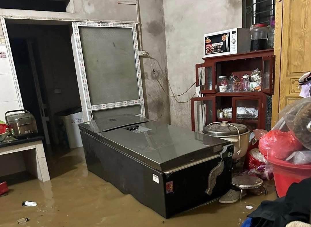 Nước lũ lên nhanh khiến nhiều tài sản, một số hộ gia đình bị ngập hoàn toàn, vật nuôi của các hộ gia đình ven suối thiệt hại nặng.