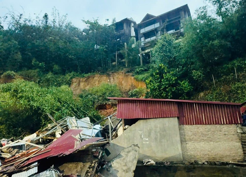 Vụ sạt lở làm 01 người chết, căn nhà bị sập hoàn toàn.