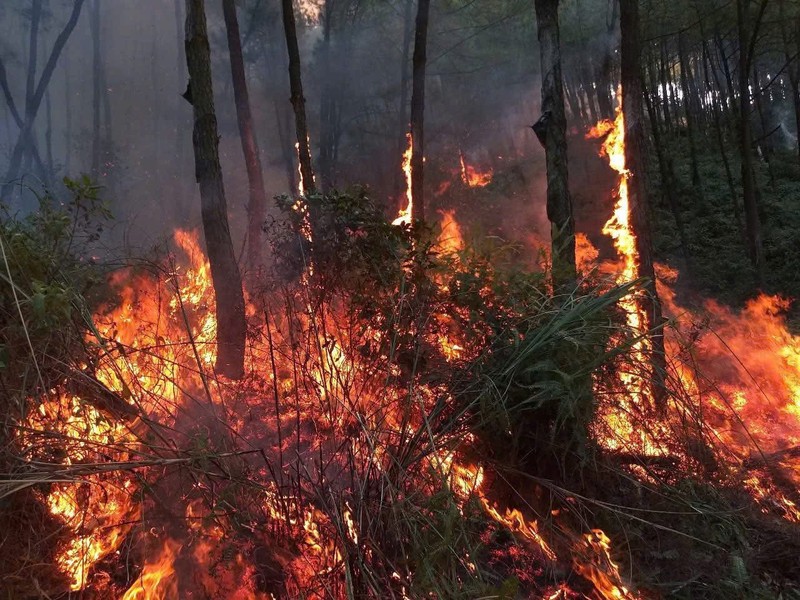 Sét đánh tạo tia lửa gây cháy rừng. Sự việc xảy ra tại rừng thông và keo tràm ở tỉnh Nghệ An.