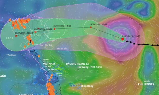 Cập nhật vị trí và đường đi của siêu bão số 9 Ragasa vào hồi 12 giờ ngày 23.9. Nguồn: Hệ thống Giám sát thiên tai Việt Nam