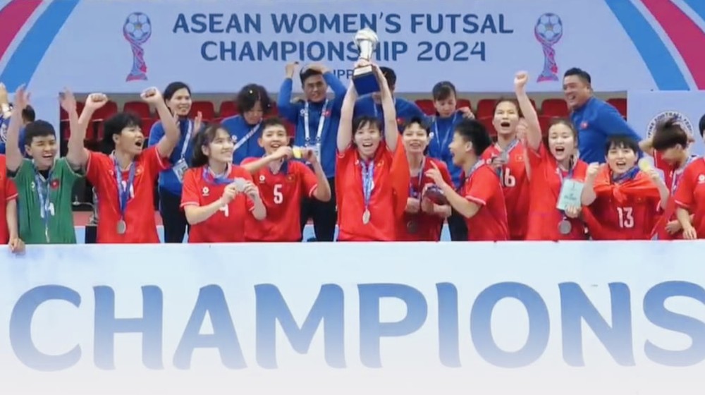 ...và cùng đồng đội ăn mừng chức vô địch giải futsal Đông Nam Á 2024 |