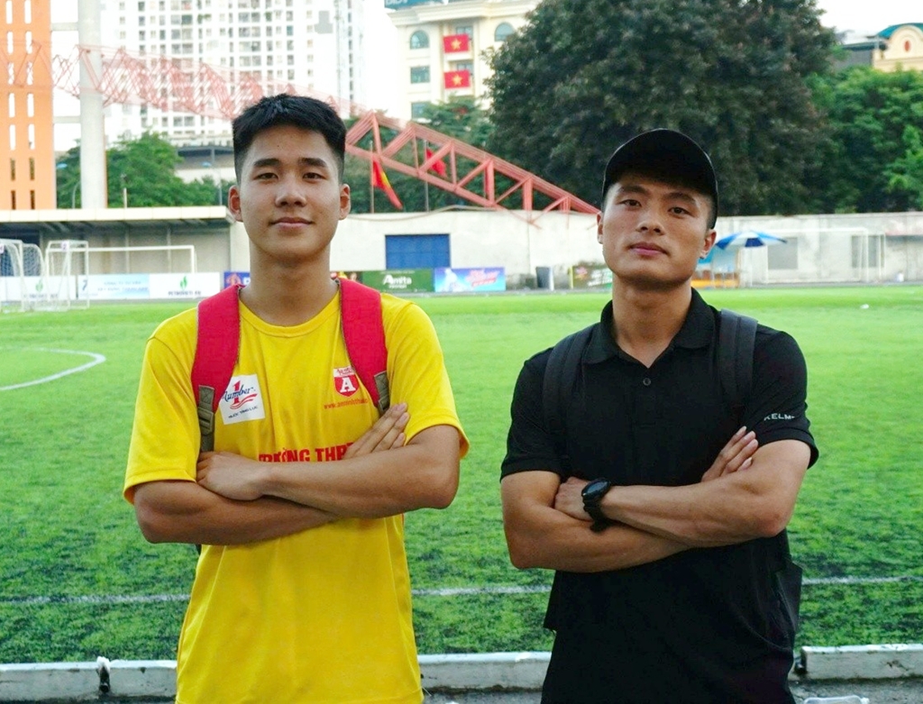 Cầu thủ Trọng Hiệp và HLV Văn Minh |