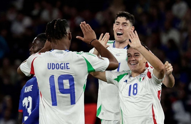Italy: Donnarumma, Mancini, Bastoni, Calafiori, Politano, Barella, Locatelli, Tonali, Dimarco, Kean, Esposito.
