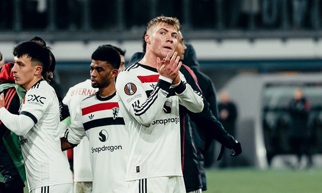 Hojlund đã tranh cãi với Amad sau trận thắng Plzen nhưng huấn luyện viên Amorim không hề tức giận với họ. Ảnh: Man United