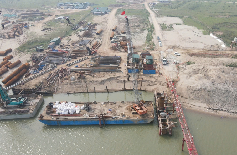 Đến nay, đã hoàn thành được khoảng 600/941 cọc khoan nhồi. Các hạng mục hố móng trụ cầu; đổ bê tông bệ trụ; khung vây cọc ván thép trụ cầu; đúc dầm Super T... đang được nhà thầu triển khai thi công.