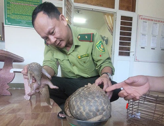 Ngay sau khi tiếp nhận thông tin, Công an xã Đông Sơn đã chủ động xác minh, lập biên bản tiếp nhận 2 cá thể tê tê. Sau đó, đơn vị đã phối hợp với Hạt Kiểm lâm khu vực để kiểm tra và xác định đây là 2 cá thể tê tê vàng, tên khoa học Manis pentadactyla, thuộc nhóm IB, là loài nguy cấp quý hiếm, trọng lượng khoảng 3kg.