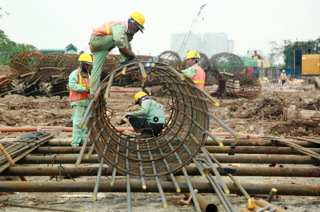 Công nhân làm việc trên công trường dự án. Ảnh: Quang Thái